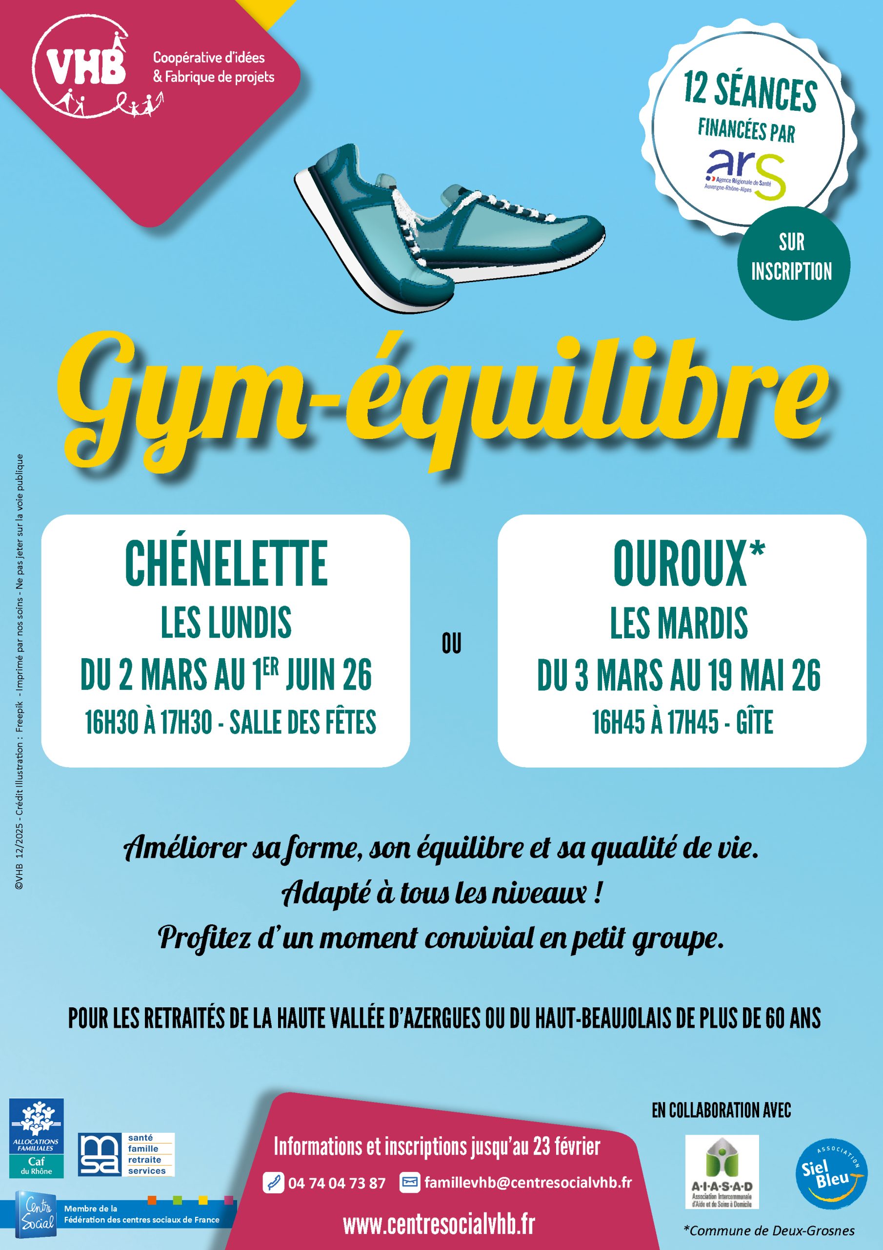 Vues depuis juin 2023 : 87 EN SAVOIR PLUS LES ATELIERS RETRAITÉS Partager Publication publiée :15 janvier 2026 Post category:par défaut Vous devriez également aimer Gym douce – Reprise à partir du 12 septembre 2025 21 juillet 2025 Rencontres avec VHB et des partenaires : Janvier à Mars 2026 17 décembre 2025 Ludothèque en Haute Vallée d’Azergues – 2025-2026 24 novembre 2025