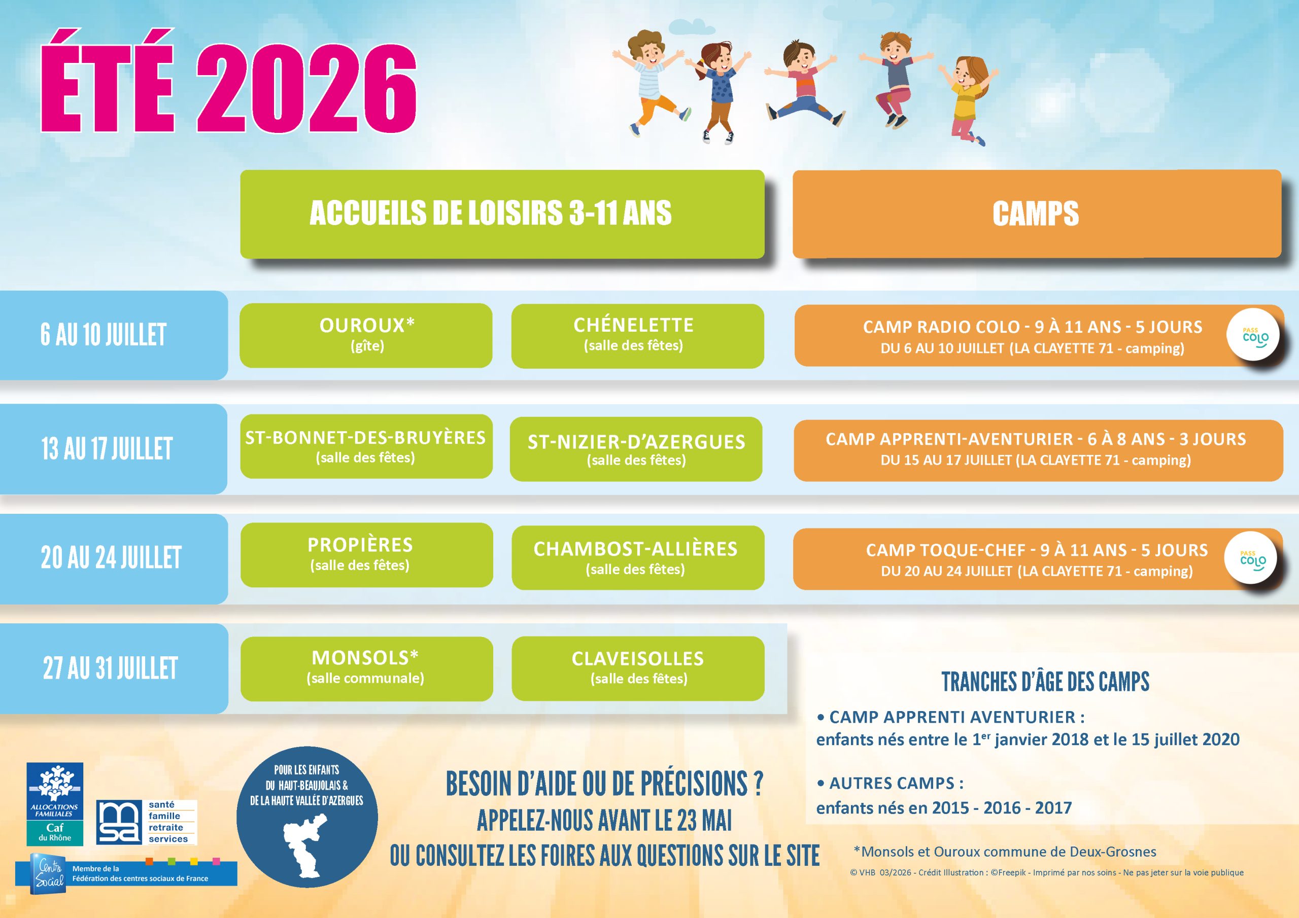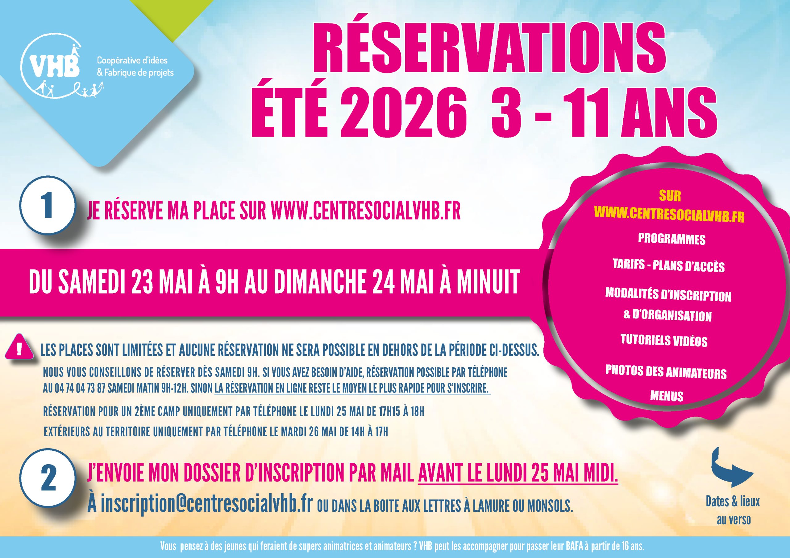 Vues depuis juin 2023 : 7 EN SAVOIR PLUS SUR LES ACCUEILS DE LOISIRS EN SAVOIR PLUS SUR LES CAMPS TÉLÉCHARGER Partager Publication publiée :25 mars 2026 Post category:par défaut Vous devriez également aimer Lire le rapport de l’Assemblée Générale du 8 avril 2025 9 avril 2025 Assemblée générale VHB – mardi 28 avril 2026 à Chénelette 23 mars 2026 Atelier éveil musical jusqu’à 3 ans à Claveisolles 19 décembre 2025