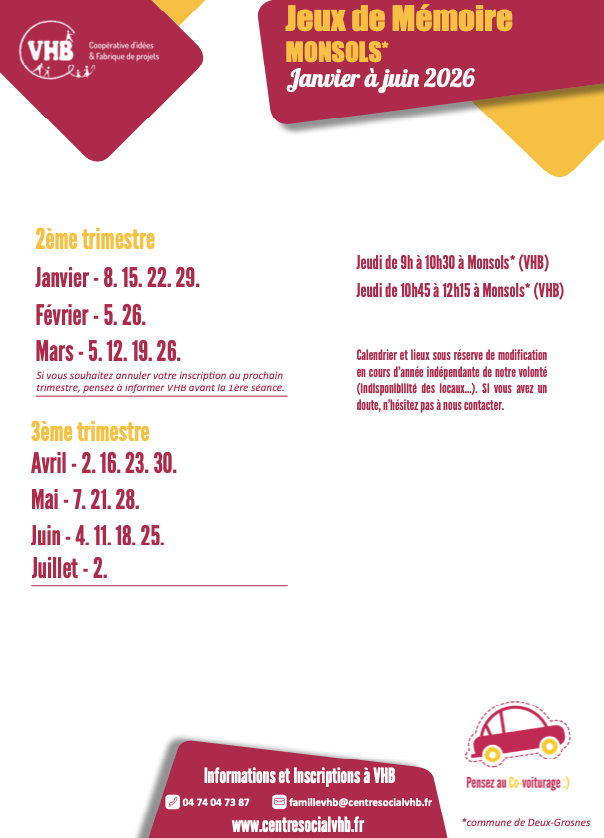 - Les jeudis de 10h45 à 12h15 Monsols (VHB) - voir le plan d'accès