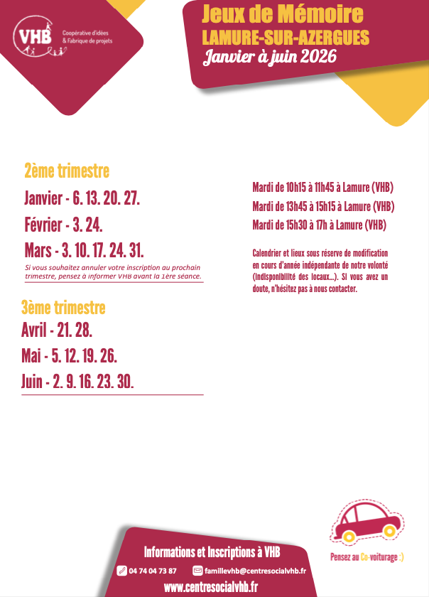 - Les mardis de 10h15 à 11h45 à Lamure (VHB) - voir le plan d'accès