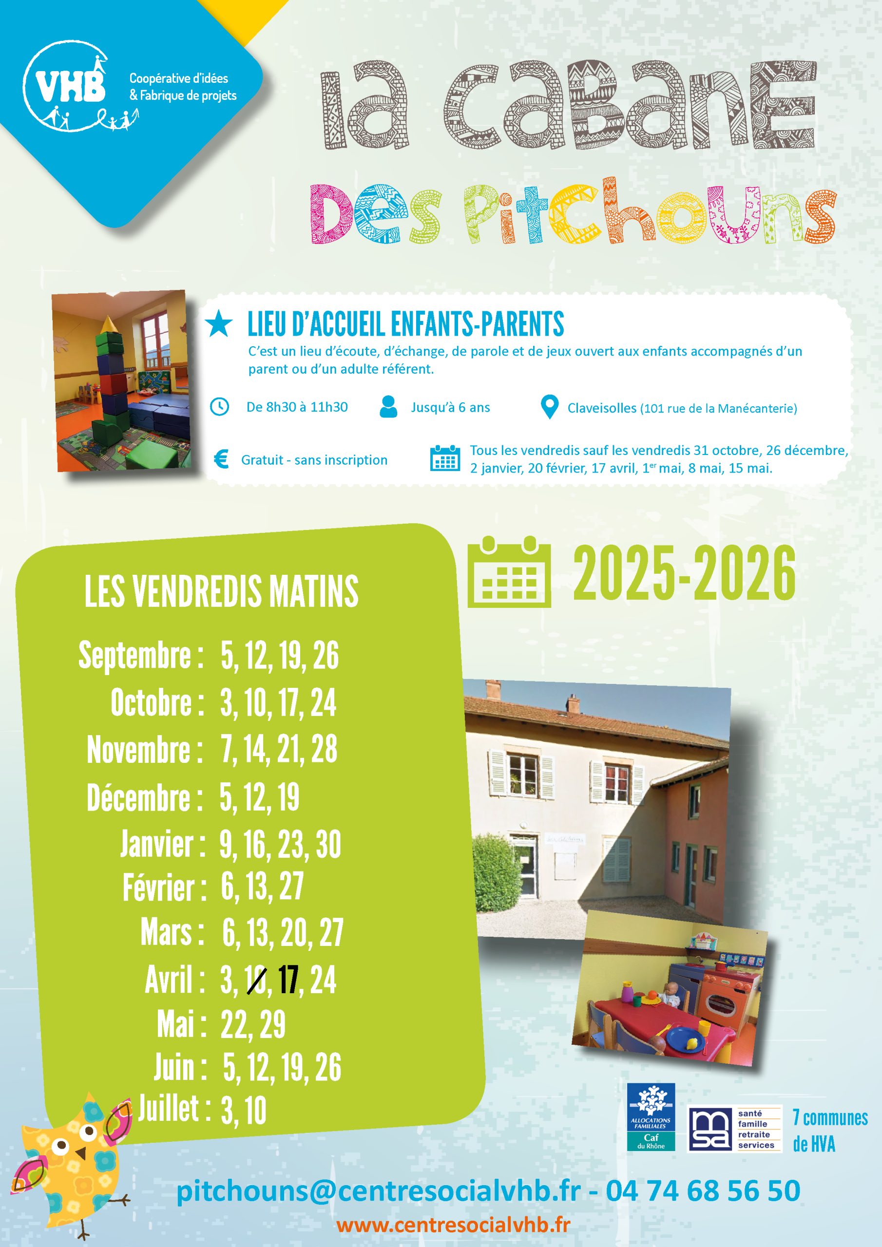 Vues depuis juin 2023 : 459 EN SAVOIR PLUS SUR LA CABANE DES PITCHOUNS Partager Publication publiée :22 juillet 2025 Post category:Adultes / Enfance / Familles / Petite-enfance Vous devriez également aimer Renouveler son adhésion (valable de juillet 2025 à juin 2026) 28 juin 2023 Nos partenaires organisent des événements ou des permanences sur le Haut-Beaujolais et la Haute Vallée d’Azergues : on vous informe ! 10 septembre 2022 Matinées des Pitchouns 2025-2026 21 juillet 2025