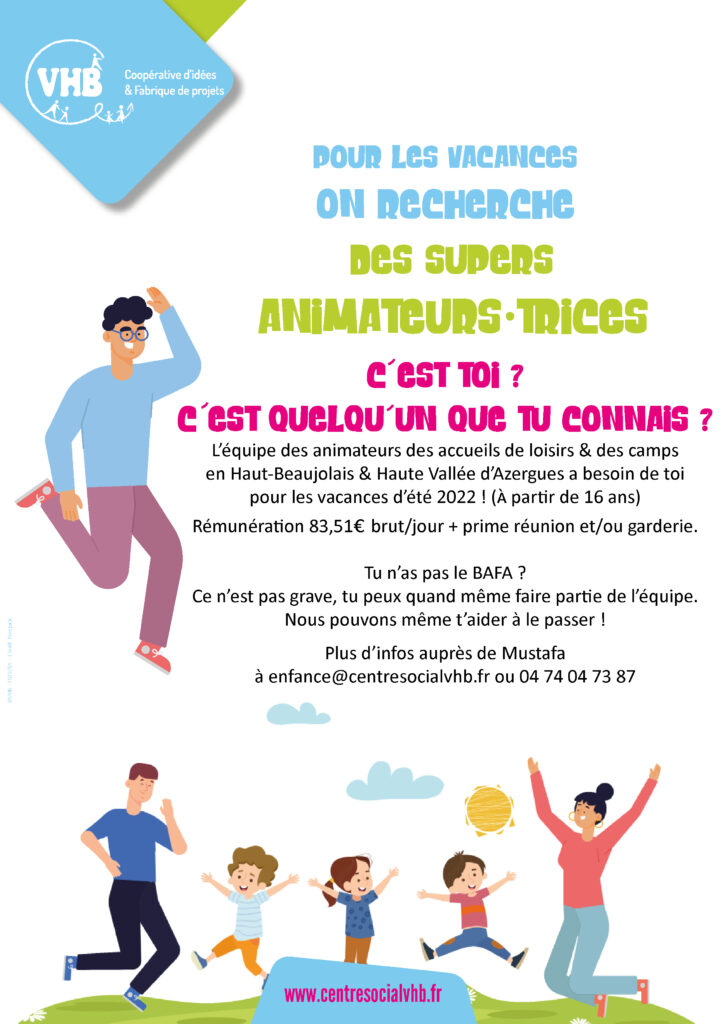 VHB recrute régulièrement des animateurs BAFA (complet, en cours ou en projet selon la composition de l’équipe) pour les petites vacances scolaires (sauf Noël) et pour le mois de juillet.